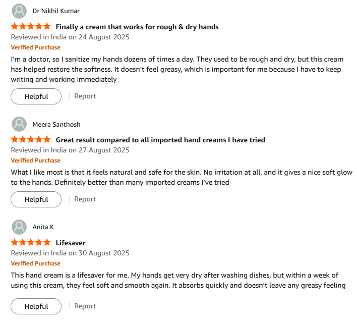 ➤ DEEP MOISTURIZING HAND CREAM FOR DRY, ROUGH, CRACKED HANDS (INDIA): Non-greasy, fast-absorbing daily hand moisturizer that repairs dryness and softens skin; ideal after sanitizers, detergents, hard water; visible hand softening & repair for all skin type